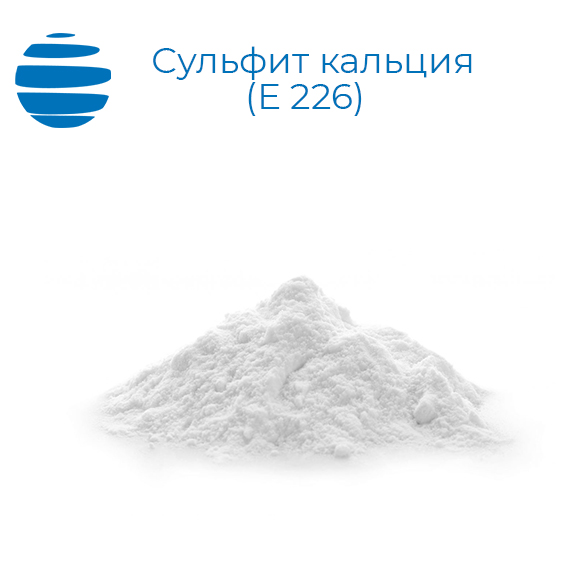 Сульфит кальция (Е 226, кальций сульфат, кальций сульфат 2-водный, сульфат кальция, кальциевая соль серной кислоты) имеет формулу CaSO4*2H2O. В пищевой промышленности используется как консервант, для приготовления желе, мармелада, мороженого, джема, повидла с низким содержанием сахара, сухофруктов, полуфабрикатов. Кроме того, консервант Е226 широко применяется в производстве вина, пива, фруктовых соков и других безалкогольных напитков. Используется при заморозке ракообразных и головоногих. Добавляется в тёртый чеснок, хрен, картофель для предотвращения процесса потемнения.